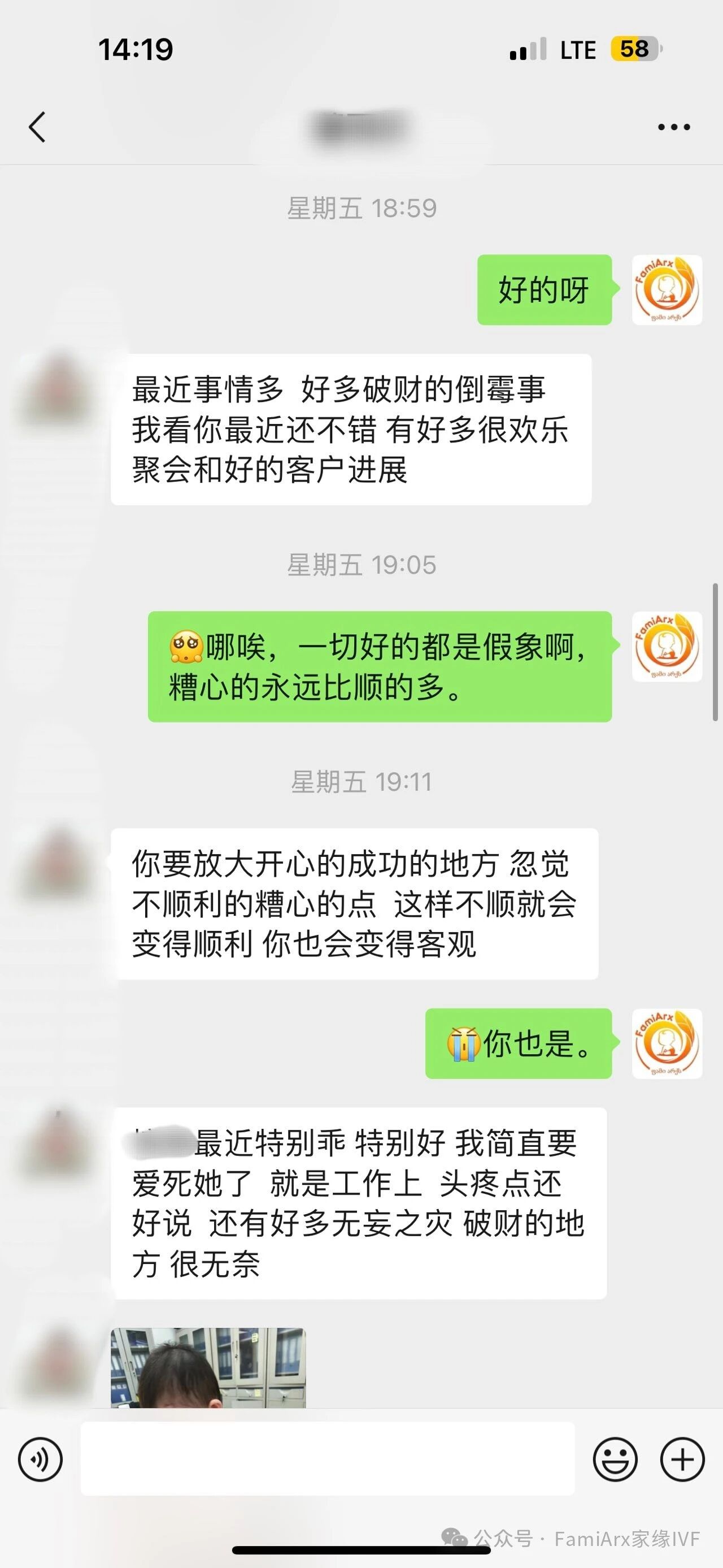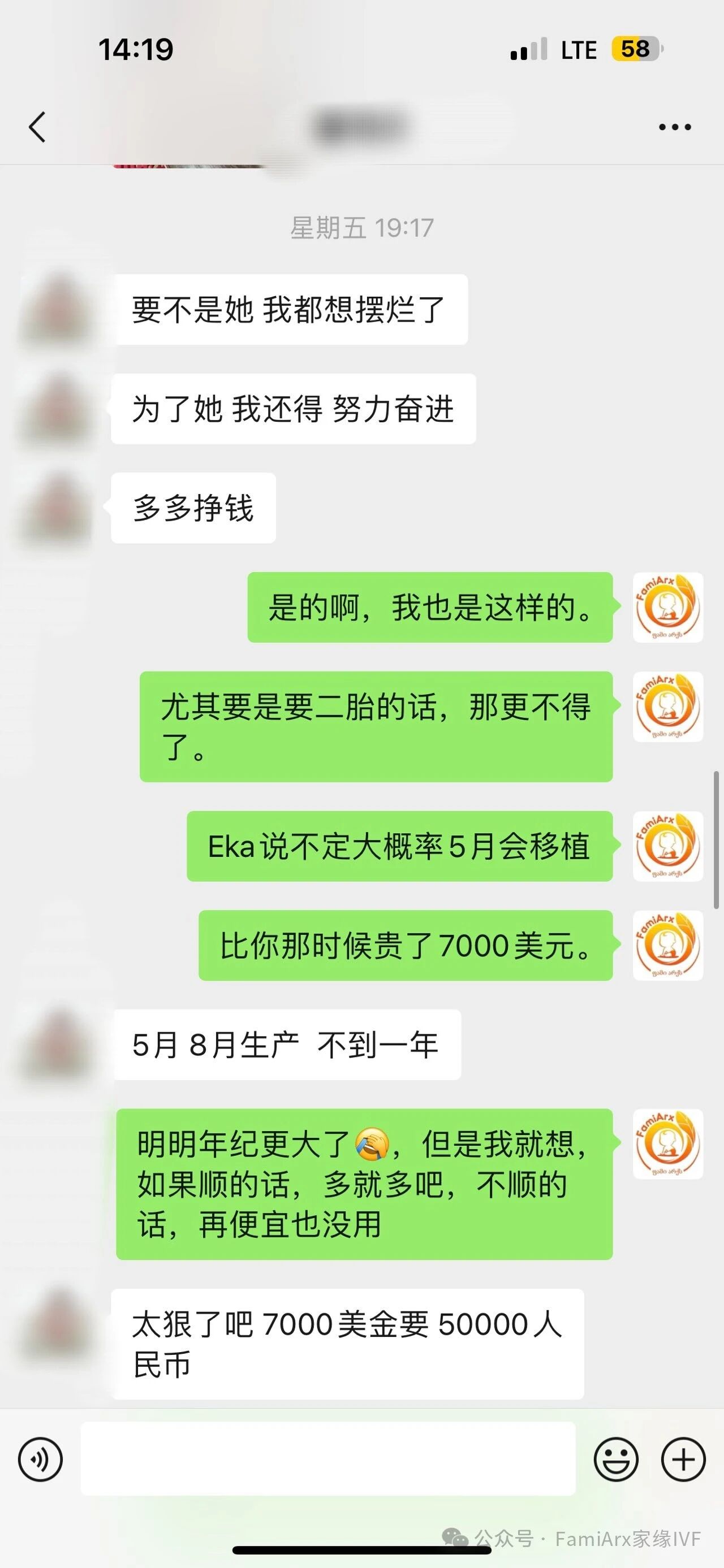 是的。聊天记录里我写得很洒脱,“成就成,不成就算了”。但是我内心似乎此刻洒脱不起来,我现在就很紧张了。我和6年前的我一点也不一样。那时候我执行我第一胎项目的时候,我的孩子不是我操作的第一个项目,但即便如此,那时候我也几乎是个小白,毕竟那时候的格鲁吉亚根本没人来,我的相关医疗知识只懂一点很肤浅的东西。那时候正所谓“无知者无畏”,我根本不担心啥,我以为只要花了钱了就一定有结果了。(但后面我也经历了自己项目的流产,以及那时候一起的几个人都失败了,最终只有我一个千辛万苦抱到娃,还有很多很多不开心的事,当然这是别的话题。)