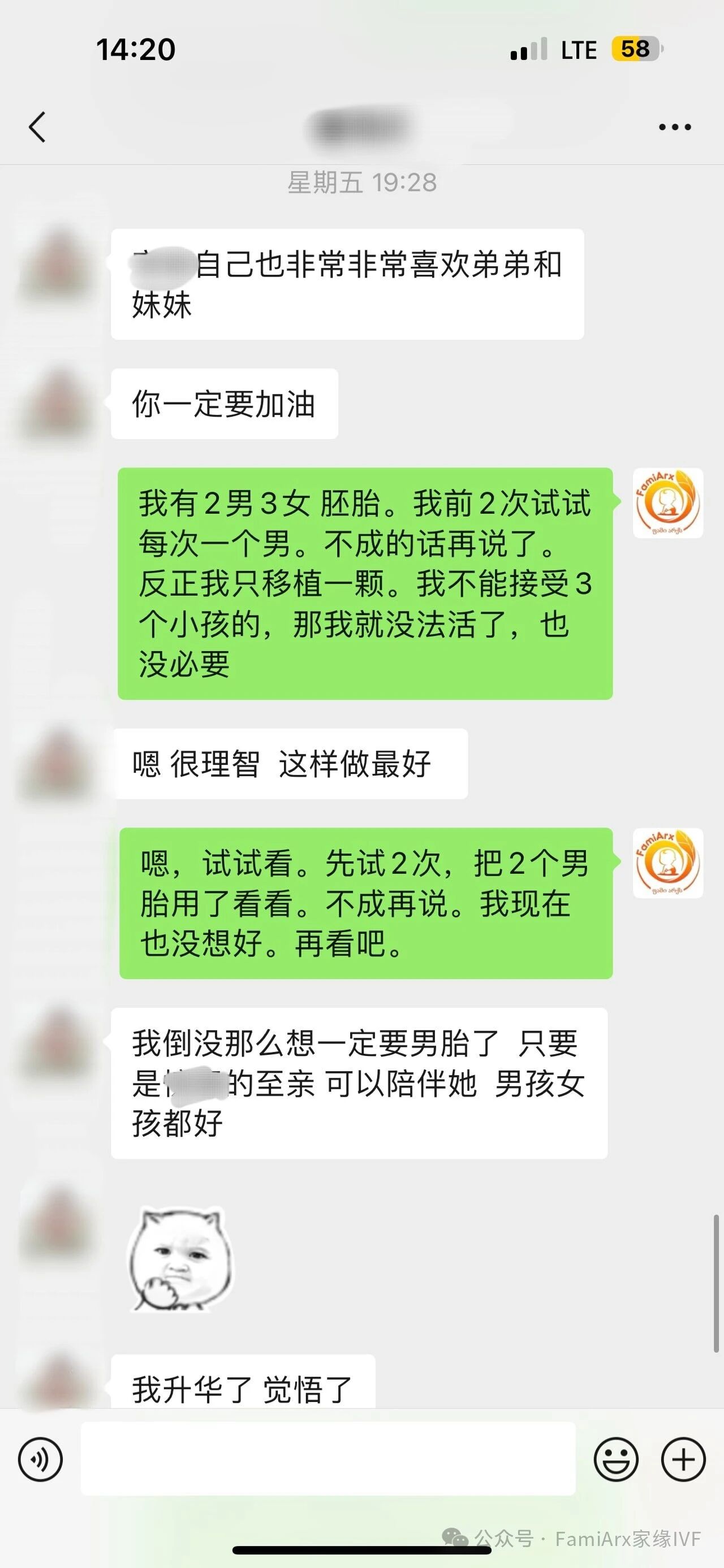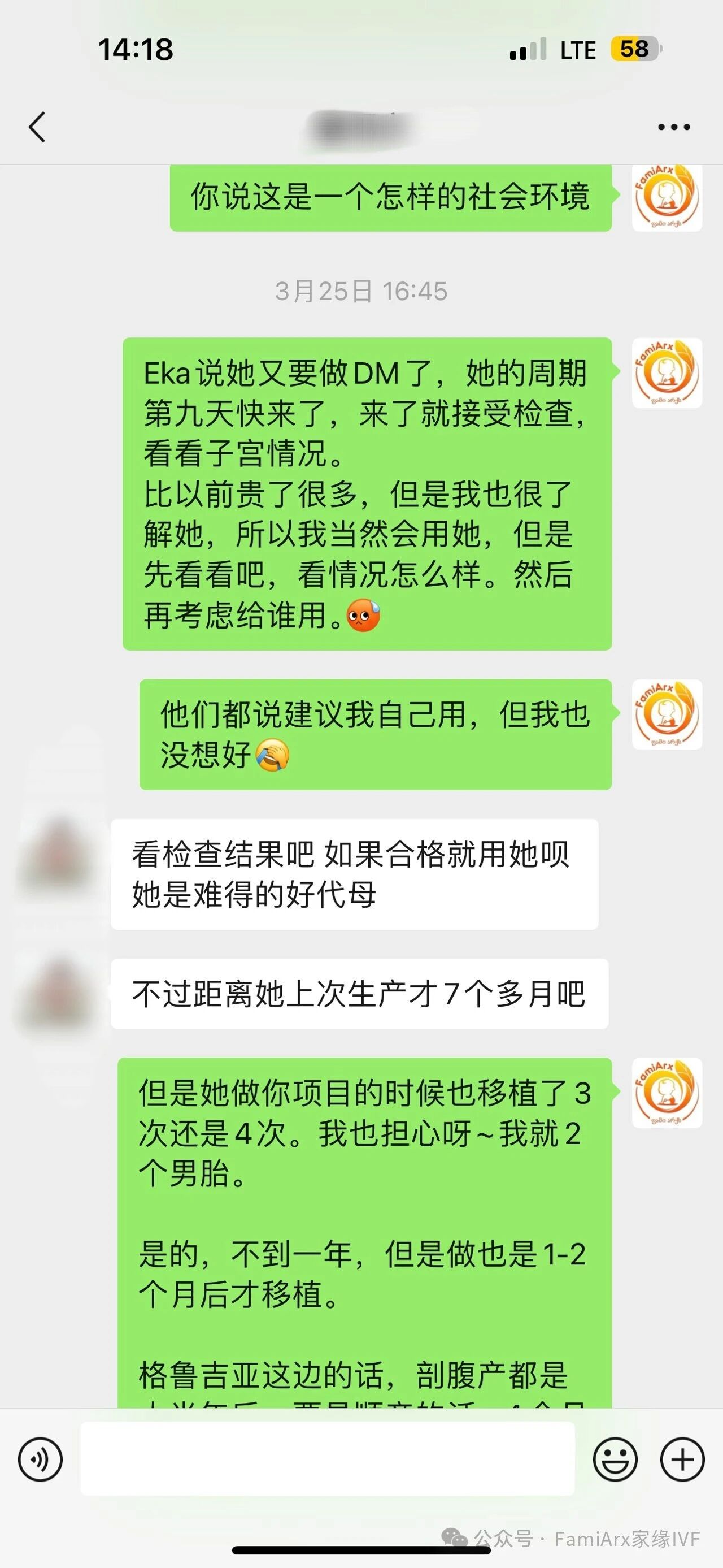 我和她(这位DM)认识也挺久的,我也帮过她很多忙,她在完成DM项目后,也帮我做一些辅助工作,我和她每周都会碰面。人我是信得过的,但是真的能中么…我不知道。何况我只要放一个胚胎,成功几率就更低了。