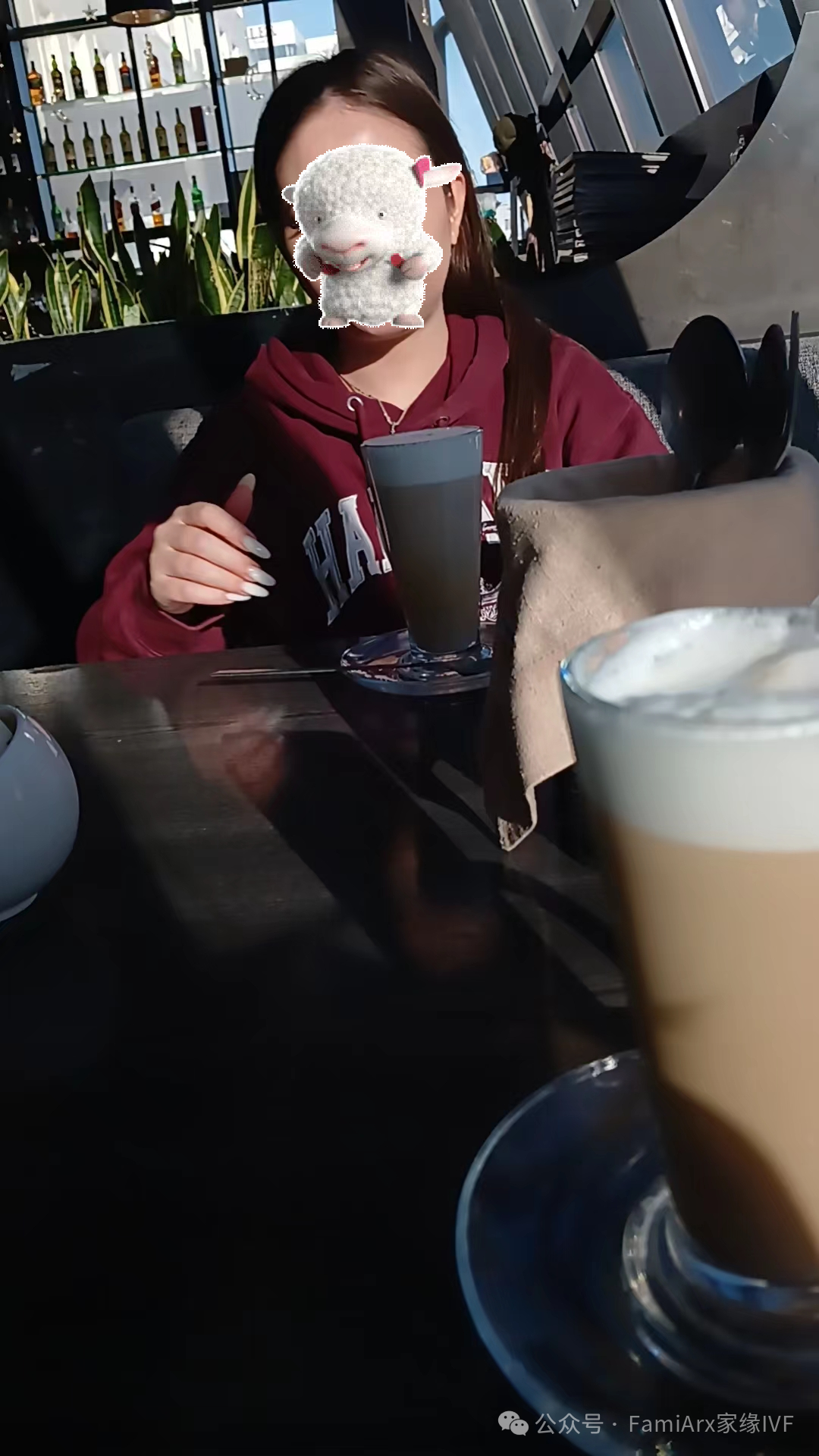 同事带她喝饮料。顺便听听她产检的事情和孕期的反应。